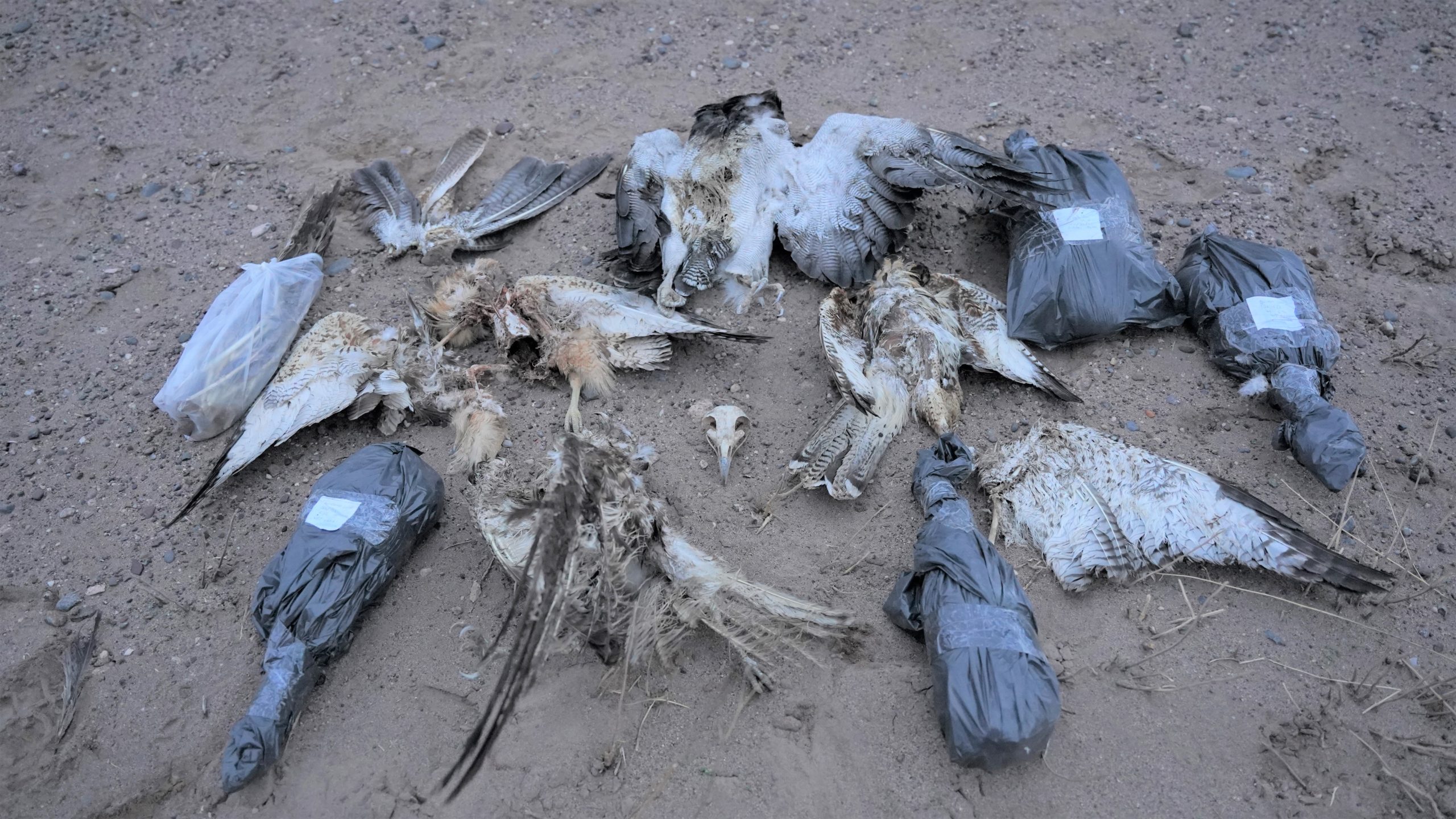 Los nuevos incidentes de electrocución de aves rapaces se registraron en los tendidos eléctricos que transcurren a la vera de la ruta provincial 20 (Ruta del Desierto) entre las localidades de Chacharramendi y La Reforma, la ruta provincial 15 en cercanías del Parque Nacional Lihué Calel y la ruta provincial 34 entre las localidades de Gobernador Duval y Casa de Piedra. En estas líneas eléctricas, los investigadores registraron un total de 18 aves rapaces electrocutadas, incluyendo entre ellas a un ejemplar de águila coronada, especie categorizada como en Peligro de Extinción por la Unión Internacional para la Conservación de la Naturaleza (UICN). El número total de aves afectadas, que se suman a las 40 reportadas hace solo unos días, podría ser incluso mayor considerando que gran parte de los cuerpos de las aves electrocutadas son rápidamente removidas por la acción de otras especies carroñeras. Al igual que en los incidentes reportados anteriormente en la zona, las especies más afectadas fueron las águilas moras, aguiluchos y jotes.